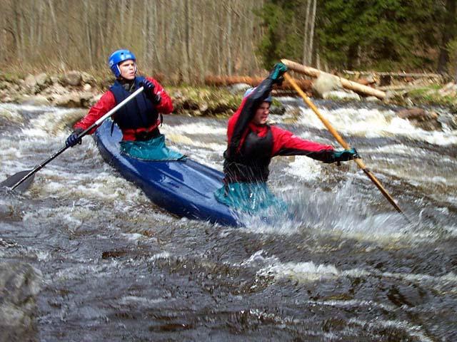 Najednou mám hlavu v ledové vodě. Zvyklý z bazénu, mám otevřené oči a tak v průzračné vodě řeky Otavy vidím rychle ubíhající balvany nepříliš vzdáleného dna. Zkouším provést celou zimu nacvičovaný pohyb. Kombinace peřejí trojkové obtížnosti a půjčeného kajaku není zrovna ideální a tak znovu vidím kamenité dno ze vzdálenosti, která mi není zrovna příjemná. Hlavou mi probleskne věta:Převrátíš-li se, udělej eskymáka. Nepovede-li se, udělej eskymáka. 'Praští-li tě šutr, udělej eskymáka. Nepovede-li se, udělej eskymáka. Přijdeš-li o pádlo, udělej eskymáka jen rukama. A tak pořád dokola.' Nakláním se tedy co nejvíce dopředu na loď a zaujímám učebnicovou polohu. Mohutný záběr a cuknutí boky. Alespoň něco, hlava je nad vodou a tak se rychle nadechuji v očekávání opětovného ponoření. Loď se však převrací přes hranu a zůstávám v já poloze, která je pro každé kajakáře příjemnější. Pár záběry se dostávám z peřejí do vracáku a cítím jak se postupně snižuje množství adrenalinu v krvi.