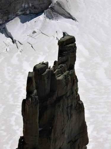 Itálie, masiv Mont Blanku, Grand Capucin 3838m. Švýcarská cesta 6b(VII), VI+A0,