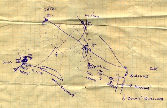 Trasu jsem najel a vyznačil na mapě v červenci. Jeden z kontrolních bodů byla vysoká vojenská hláska. Bohužel ji v srpnu nebo září zbourali, a tak chudáci závodníci lítali po lese a navzájem se přesvědčovali, že ji našli.