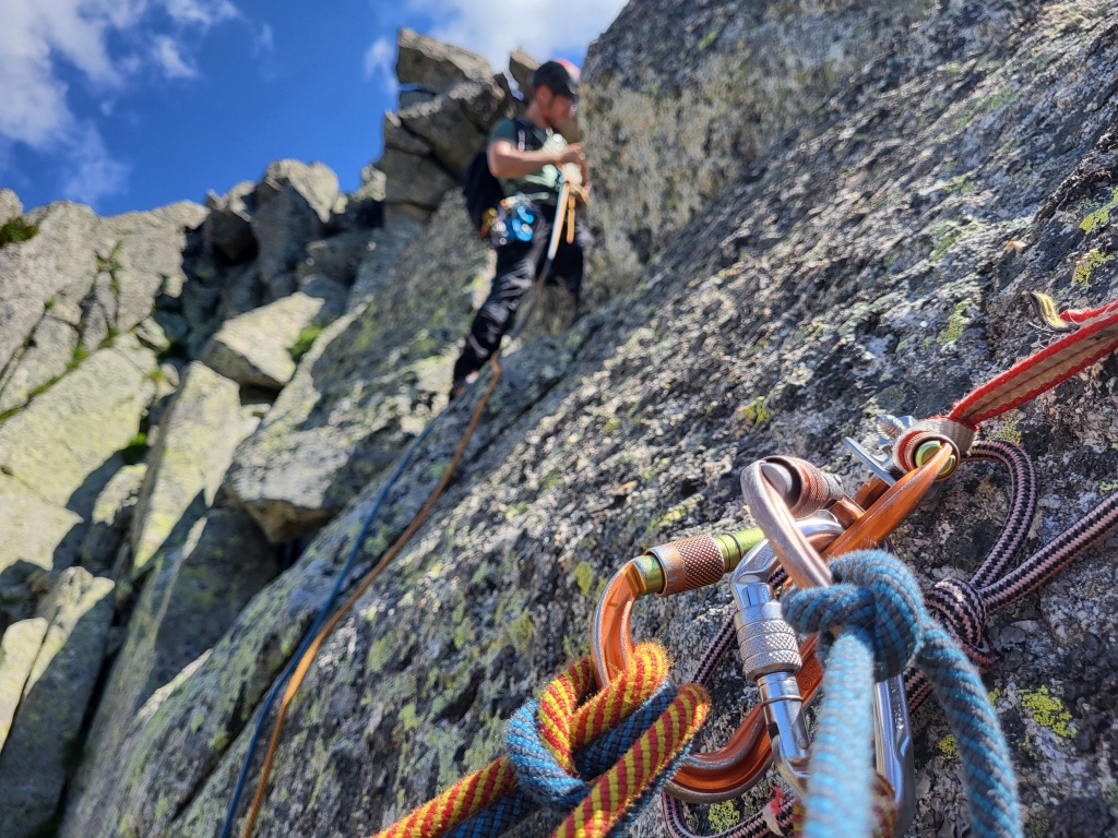 To se dozvíš v průběhu horoškoly. Doporučenému materiálu věnujeme zpočátku velkou pozornost. Na úplný začátek si vystačíš s málem – stačí sedací úvazek, lezečky, karabiny, jistítko a helma. Počítej s tím, že nákupům se nevyhneš. Dobrá zpráva pro tebe je, že máme solidní půjčovnu a nováčci mají přednost, většinu drahého materiálu ti půjčíme, než se rozhodneš, že si ho koupíš.
