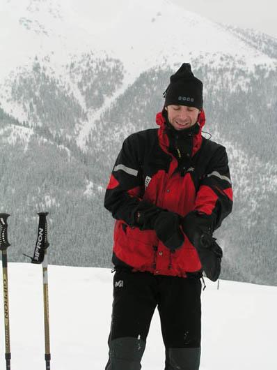 Bylo vidět. Bylo zima. Bylo větrno. Bylo hnusně. Tolik náběhů na omrzliny jsem ještě na jedné túře neviděl. Zbyněk s Vendulou sundávají beztak padající pásy a sjíždí z hřebene na jih. (Ale kdeže: skryti fujavicí a poháněni mlhou jsme uprchlíky pronásledovali až na Prašivou. Tyč od tyče, dokud tyto nesplynuly s okolním bílem, pak už jen po stopách. Ani ty už v houstnoucí tmě nebylo vidět, a protože jsme nechtěli bivakovat na hřebeni vystaveni živlům, odporoučeli jsme se do bezpečí pod alpinskou hranici lesa. Ráno se potvrdilo tušení, že nejsme pod sedlem Hiadeľským, ale úplně jiným, a že tím pádem nebrousíme prašanem pokryté svahy k Donovalům ale na jih do Brusna...Zb.) Na sever je všechno nafoukané, jen slítnout do údolí. Zima, padající pásy, pitomé sjezdy a Bára je v krizi. Kde bere ty náhradní baterky, ze kterých šlape ještě dobré čtyři hodiny? Mlha. Vítr. Sníh řeže do očí.Na Prašivé končí tyče a my proto místo v Hiadialském sedle končíme někde na jih (?) od něj ve svahu v lese. Dusáme plošinky na stany, vaříme, pod vedením Otíka stavíme iglů. Zpíváme, jíme cukroví, Omarek odpaluje Beruščin kaktus.