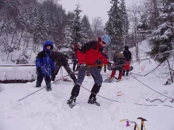 Několik nepříliš kvalitních fotek z nácviku zachraňování z ledovcového potůčku, lezení po ledech a ranního vstávání.