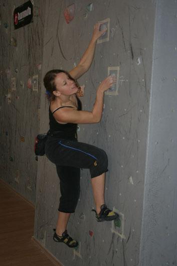 Letos se žádné profesionální stavěče zajistit nepodařilo a tak na stěnu vtrhla parta nadšených amatérů. Díky výpomoci ze spřátelených oddílů nás bylo nakonec celkem osm, tři holky a pět kluků. My jsme se vrhli na stavění holčičí kvalifikační cesty, kluci se rovnou pustili do pánského finále. Protože jsme neměli plošinu, nechtělo se nám oblézat stěnu s vrtačkou a tak jsme se rozhodli oblepit chyty barevnými páskami. Po té, co jsme asi dvě hodiny viseli v cestě jsme zjistili, že pásky zakoupené v Baumaxu jsou na dvě věci a museli jsme to kompletně přelepit. Až do druhého dne nás pak trápila noční můra že přijdeme ráno na závody a všechno bude popadané.