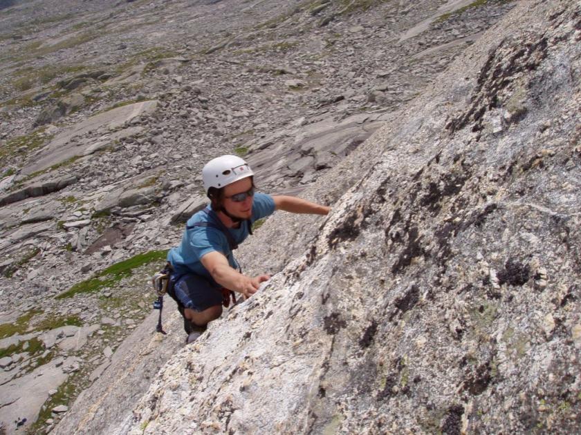 Jani lezla za Bidlem a Beruškou všechno možné a nejtěžší byl Vinciho hřeben (VI) na předvrchol Cengala.