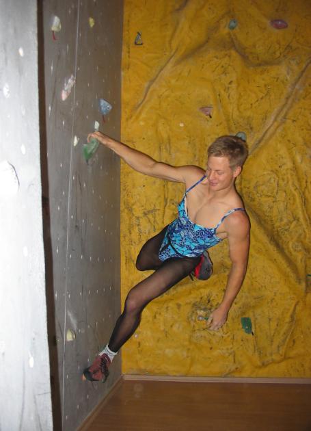 O lezce již takový zájem není. Bouldry jsou podle očekávání poměrně lehké, ale velké ovace vzbouzí kruté boje o každý centimetr ve druhé kvalifikaci. Zahrada překonává sám sebe a padá jen kousek pod vrcholem, celá hala vře, když Janek proti očekávání topuje, topuje také Zdeňka a Evuša, které měly při bouldrování smůlu, a pan Karásek se na svých tlapkách rovněž vyškrábe až do převisu. Úžas a potlesk budí orientální mažoretka s plnovousem, která s lehkostí vystoupá až k topu.