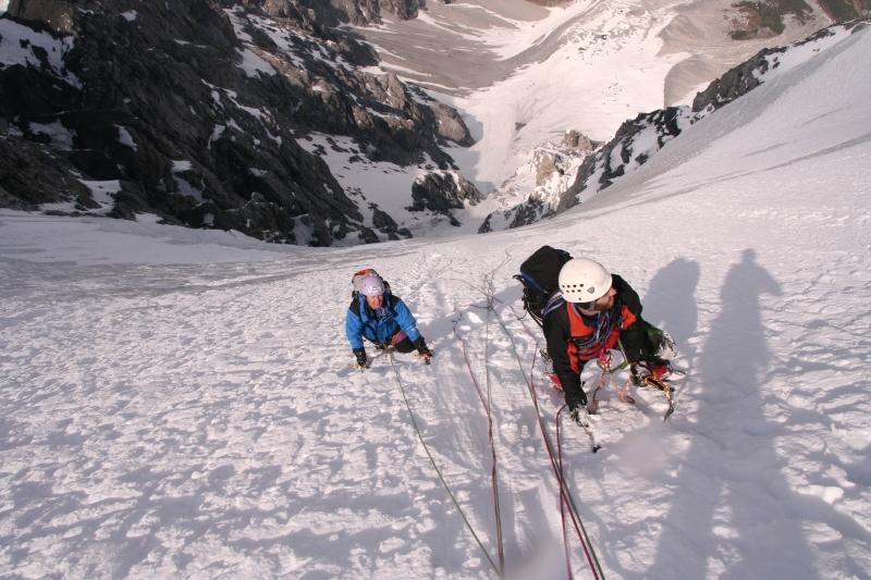 Tak jsme to přelezli. Těžší než jsme čekali. Srdce pravého horolezce by plesalo: cesta je dlooooouuuuuhááááá a náročná na fyzičku, kořeněná sprškami kamenů a kanonádami kusů ledu; my z toho byli trochu divoký. Ale zážitek každopádně velkej. Dávám sem alespoň pár fotek, třeba kluci něco napíší.
