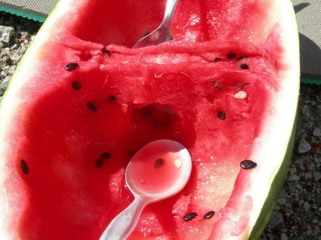 Restday je plnohodnotnou součástí každého horolezeckého zájezdu. Snídáme, chytáme sluneční paprsky, Míra z melounu vytvořil umělecké dílo "Most mezi dvěma světy". Rozhodujeme se zjistit předpověď počasí a opatřit si náčrty dalších cest. V Cortině d´Ampezzo, kde v době, kdy sport byl více sport a méně byznys a politika, proběhly jedny olympijské hry, kupuju průvodce (budete mít podle čeho lézt, socky z Česka!). Mám radost, je to výběr asi 75 cest s náčrty pěkného sešitového formátu, přesně takový, jaký jsem si představoval. Předpověď počasí likviduje moje tajné plány týkající se lezení v jižní stěně Marmolady. Škoda, snad tedy někdy jindy. Tak hrozné to ale stejně není: zítra má být dopoledne hezky, pozítří celodenní slunečno!