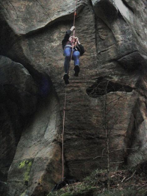 Do setmění běháme, nacházíme ale i nenacházíme, cvakáme, vylezeme na skály ale nevylezeme na švestku v bukovém lese, slaňujeme ze skal a veverkujeme po holém kmeni smrku, funíme. V cíli máme ještě půl hodiny k dobru, ale už se nám nikam nechce, je tma.