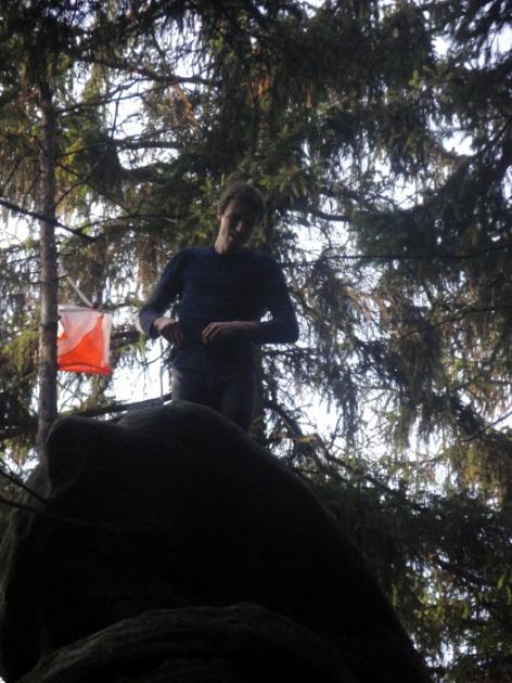 Do setmění běháme, nacházíme ale i nenacházíme, cvakáme, vylezeme na skály ale nevylezeme na švestku v bukovém lese, slaňujeme ze skal a veverkujeme po holém kmeni smrku, funíme. V cíli máme ještě půl hodiny k dobru, ale už se nám nikam nechce, je tma.