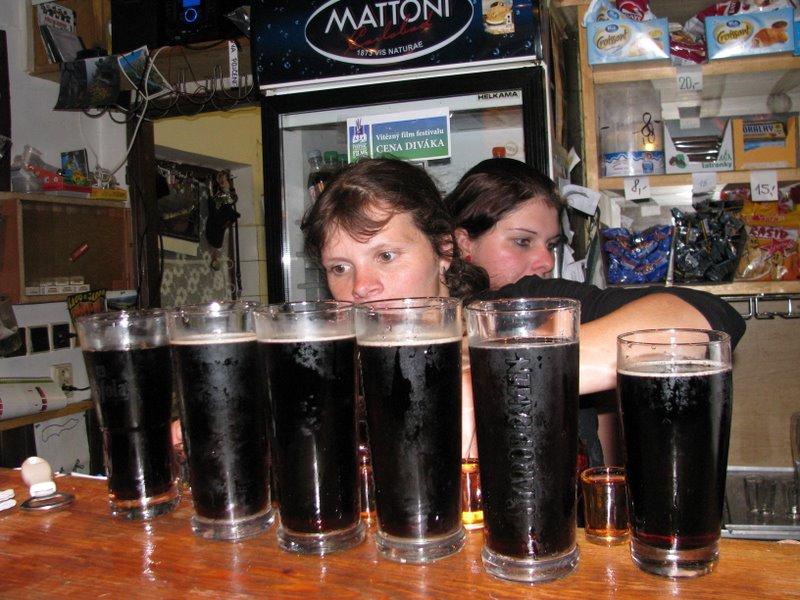 Na koupáku raději objednáváme hned šest piv naráz a k tomu klobásu a bramboráčky jako protialkoholovou vložku. Milan sedící naproti si zprvu myslí, že asi zrovna přijel zbytek humanity, a hned se mi sápe po jedné ze sklenic. Musím ho zklamat: "tady ty tři světlé jsou pro mě, a tady ty řezané pro Martina. A jestli mi chceš jedno vzít, tak rovnou objednej dalších pět. Tady jde o čas!". Po dvou pivech začínáme mít trochu obavy. Martin se trochu potácí, já mám pocit, že se mi dělá trošku šouflo. Kontrolujeme čas a domouváme strategický time-out. Zaváhání by mohlo znamenat předčasný konec. Náš plán se vyplácí a zbývající tři piva zvládáme krásných 15 minut před devátou. 25 bodů je našich! V euforii se rozhoduji využít každou vteřinu a od baru si odnáším tupláka. Ukázalo se ale, že naše vybroušená strategie žádnou improvizaci nesnese. Po pár locích odbíhám kamsi vdál. Výstřel ohlašující konec závodu mě zastihuje kdesi ve stínu u plotu.