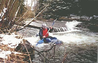 Prvních pár set metrů pod Žďárem se říčka klikatí v meandrech, občas odřeme břicho lodi o nějaký stupeň. Nad Horními Hamry se ovšem údolí začíná zužovat, přicházejí pěkné peřeje a my drhneme o kamení. Vody by sice pro plasťáky bylo tak akorát na sjetí, ale neustále ji odvádějí opravené a funkční náhony k elektrárničkám. Těch deset kilometrů do obce Sázava je utrpením. Mnohdy se spíš kloužeme než jedeme, často uvázneme na kameni a občas i bidlujeme. Sraz (a první auto) máme právě v Sázavě a tam to někteří vzdávají. Omlouvám se všem, že jsem vybral právě tuhle řeku, Kaje se Radek a vytahuje svoji loď na břeh. Deset lodí však prodírá dál vánicí, a ukazuje se, že udělaly dobře. Teprve od Sázavy se jede dobře, většinu jezů lze sešoupnout, peřeje se uklidňují a řeka je širší a hlubší. Odtud se dá jet už i na deblovce a na kajaku je to příjemné svezení. Končíme v Ronově těsně nad Přibyslaví po dvaceti kilometrech na řece. Všichni podchlazení, někteří s omrzlými prsty, jiní vykoupaní, ale všichni šťastní, že máme horní Sázavu za sebou. Nebylo to nic hezkého, ale byl to obrovský zážitek, komentuje to večer v hospodě Pionýr. My horolezci z Humanity jsme totiž na vodě extrémisté - ne že bychom sjížděli těžké řeky, ale jezdíme je v extrémních podmínkách.