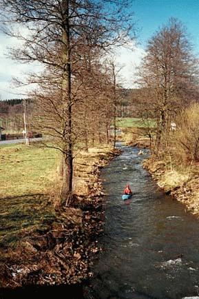 Prvních pár set metrů pod Žďárem se říčka klikatí v meandrech, občas odřeme břicho lodi o nějaký stupeň. Nad Horními Hamry se ovšem údolí začíná zužovat, přicházejí pěkné peřeje a my drhneme o kamení. Vody by sice pro plasťáky bylo tak akorát na sjetí, ale neustále ji odvádějí opravené a funkční náhony k elektrárničkám. Těch deset kilometrů do obce Sázava je utrpením. Mnohdy se spíš kloužeme než jedeme, často uvázneme na kameni a občas i bidlujeme. Sraz (a první auto) máme právě v Sázavě a tam to někteří vzdávají. Omlouvám se všem, že jsem vybral právě tuhle řeku, Kaje se Radek a vytahuje svoji loď na břeh. Deset lodí však prodírá dál vánicí, a ukazuje se, že udělaly dobře. Teprve od Sázavy se jede dobře, většinu jezů lze sešoupnout, peřeje se uklidňují a řeka je širší a hlubší. Odtud se dá jet už i na deblovce a na kajaku je to příjemné svezení. Končíme v Ronově těsně nad Přibyslaví po dvaceti kilometrech na řece. Všichni podchlazení, někteří s omrzlými prsty, jiní vykoupaní, ale všichni šťastní, že máme horní Sázavu za sebou. Nebylo to nic hezkého, ale byl to obrovský zážitek, komentuje to večer v hospodě Pionýr. My horolezci z Humanity jsme totiž na vodě extrémisté - ne že bychom sjížděli těžké řeky, ale jezdíme je v extrémních podmínkách.