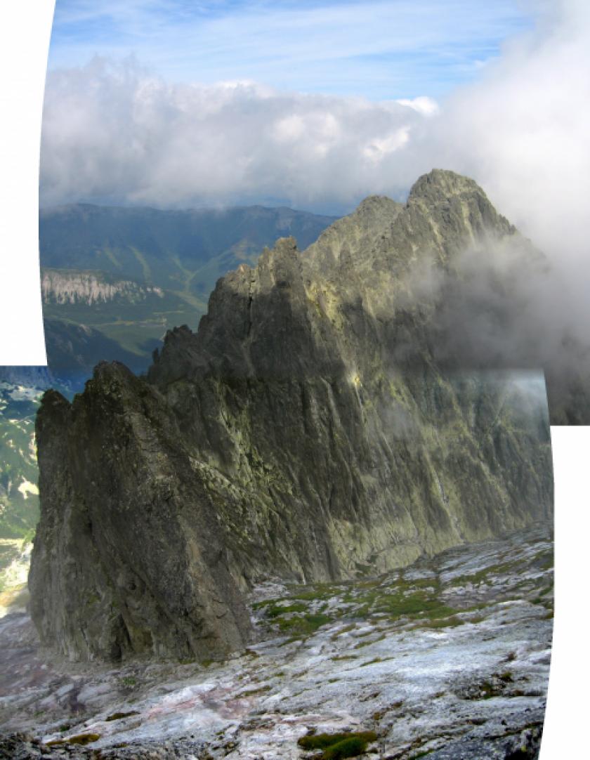 lanovkou z Tatranské Lomnice na Lomnické sedlo ( 18 eur), sestup po řetězech (dobře schované, mužík u levé strany hřebenu u suťoviska) do Teryho kuloáru