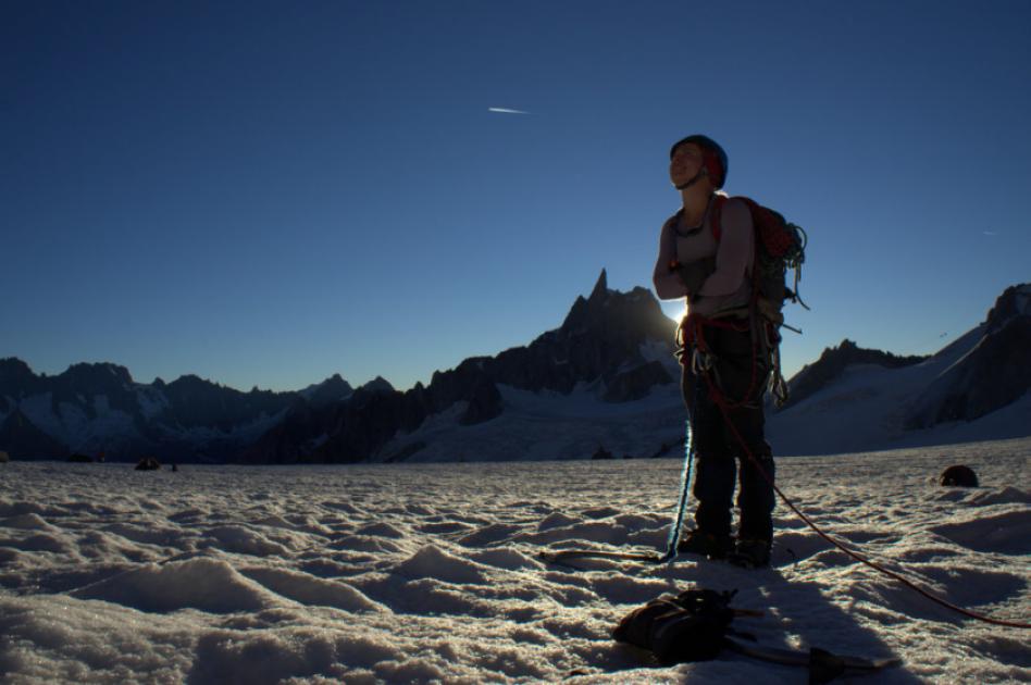 31. tak už kurva svítá? (v pozadí severní stěna Grandes Jorasses se svým legendárním Walkrovým pilířem)