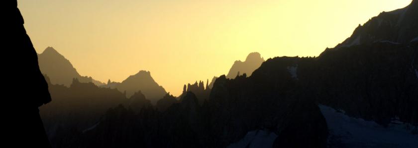 17. hups, a už se leze na Grepon, svítání již pár set metrů nad ledovcem... slunce prosvítá zkrz Tour Rouge