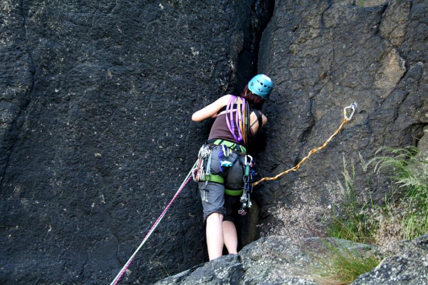 2) Vylézt vícedélkovou cestu po vlastním: najít ji v průvodci, samostatně s jiným nováčkem vylízt, odjistit, sestoupit.