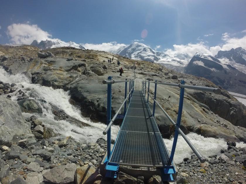 Další den, to jest pondělí 3.8. jsme přejeli autobusem do Saas-fee, vyjeli lanovkou AlpinExpress, dále metrem Metro-Alpin až na Mittelallalin. Nutno dodat, že na Metro-Alpin neplatí CitizenPass a platíme 36CHF. Ovšem obsluha nám sděluje, že zakoupená jizdenka platí jak na cestu zpět, tak až do konce našeho pobytu. Můžeme na ní i do ledovcové jeskyně, bohužel na tu už nezbývá čas. Z Mittelallalinu nás čekala cesta přes vrchol Aplhubel do bivakovací boudy Mischabeljochbiwak. Vhodná pro přespání v rámci aklimatizace, protože se nachází ve výšce 3847m.