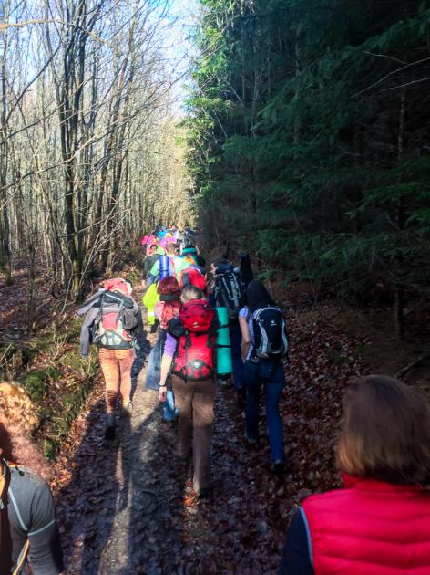 Koho to zase napadlo, abychom se brodili blátem přes Bubovické vodopády, stoupali na Doutnáč a pořád do kopce šli až na Paraple a Solvayovy lomy? Copak jsme nemohli jít jako normální lidi po pohodlné cestě okolo Kačáku a po silnici z Hostimi do Svatého Jana?