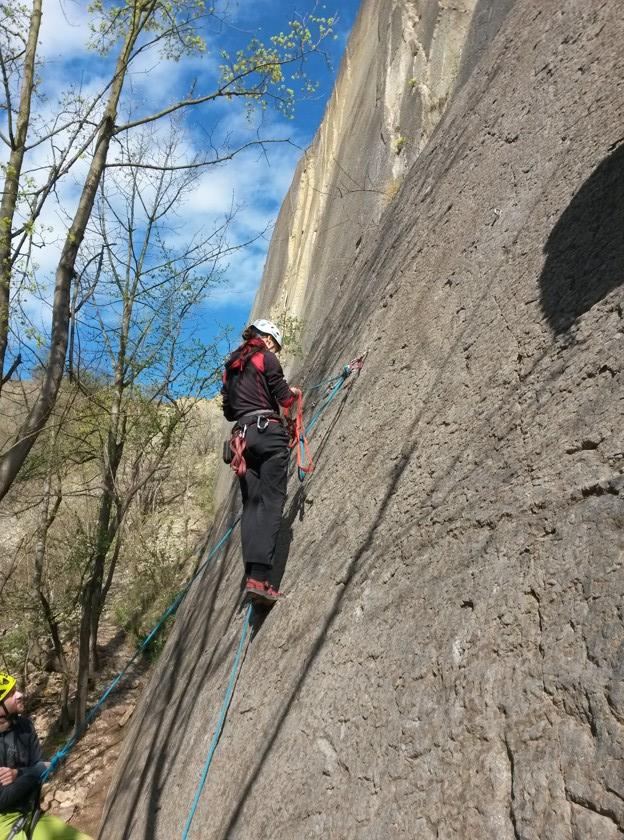 V neděli se Kuba s Davidem nechali zachraňovat skoro naostro na třídélkové Dušičkové stěně. Všichni si vyzkoušeli, jak je těžké a náročné na materiál i lidi, ale ne nemožné, zachránit zraněného nešťastníka z velké členité stěny.