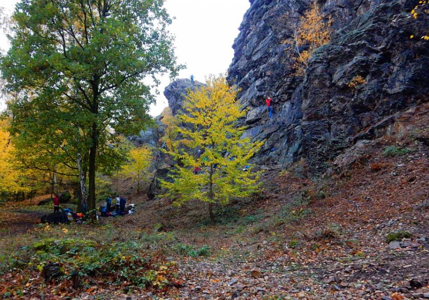 Tomáš udělal radost všem horolezcům, kteří polezou Tři převisy, neboť pod první převis umístil stabilního frienda.