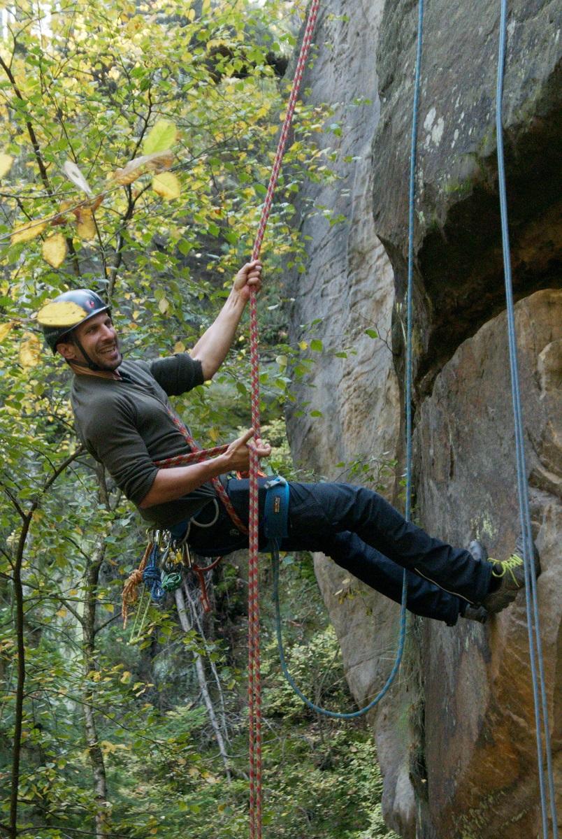 Zpestřením letos byli Erik a Brejchy, kteří experimentálně optimalizovali své vybavení pro technické lezení a techniku traverzu zhoupnutím. Vybavení pak dali k dispozici i ostatním. Objevil se i Geo, aby si vymazlil ideální délky prusíků pro výstup z trhliny. Ani ostřílení horolezci totiž nepohrnou příležitostí pilovat své dovednosti a sladit se s ostatními.