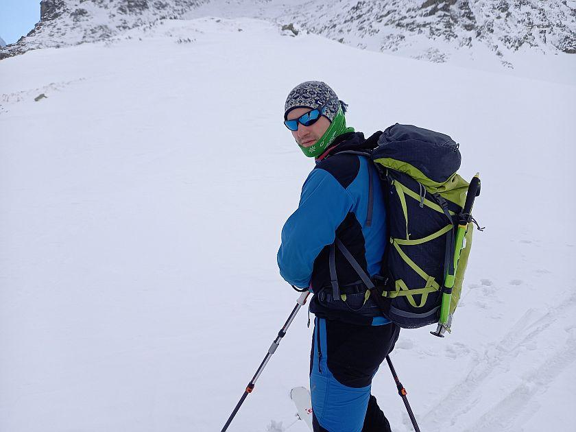 Tomáš K. proběhl mnoho sedel a vrcholů v Červené dolince včetně několika pokusů o Jahňací štít. Nejtěžší směr sjel šikmým žlabem ze Západní Kozí štrbiny k Žltému plesu 40° na sever.