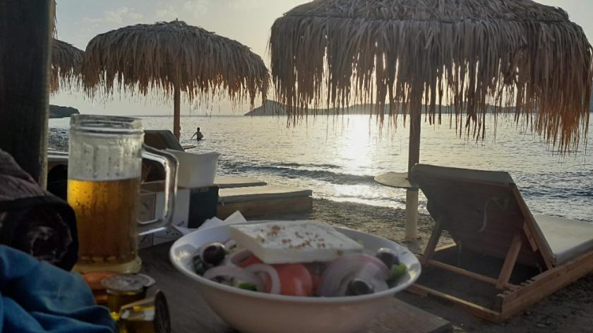 Takže bič a pryč dolu k moři na pláž, do vody a do baru na pifko. Takhle to vlastně bylo každý lezecký den, lezení, moře, pivko a pláže. Jediná výjimka byla návštěva hospody k večeři.