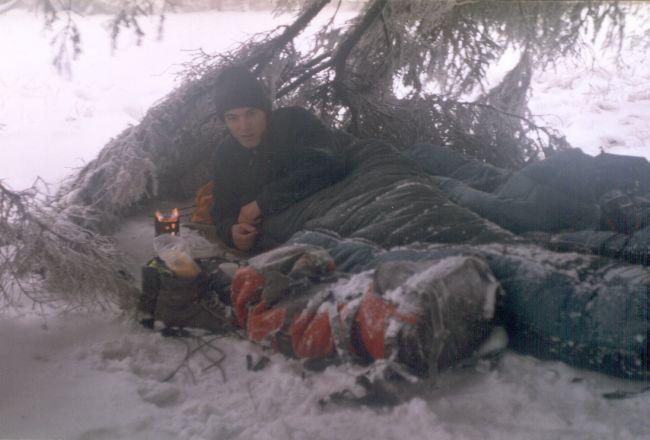Rychlebské hory zdají se neatraktivní, zastrčené a liduprázdné a tudíš idealní pro zimní výlet. Stejný pocit měl zdá se i pionýr a jeden pražský oddíl, na který jsme druhý den narazili. Bezproblemový postup na severu díky nedostatku sněhu se s přibývajícím časem změnil ve sněhové orgije. Nemaje sněžnic ani běžek jsme se třetí den prohrabali rychlosti dva km/hod na Smrk a pak podle značení kolem veselého silvestrovského stanu na Paprsku do našeho zmrzlého silvestrovského stanu v lese. Nový rok jsme oslavili celodenním broděním se podél běžkařských stop na Kralický Sněžník, odkud jsme následující den sestoupili do Dolní Moravy plní pocitů z nádherných výhledů v husté mlze a promočenýma botama..proste super (Tomáš a Jirka)
