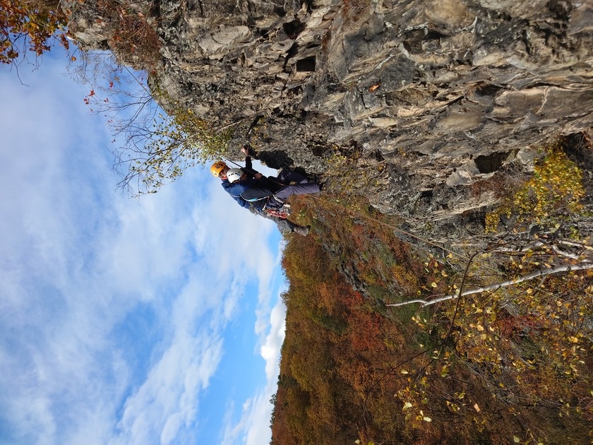Kolem 9:10 jsem připraveni vyrazit do přilehlých skal, je čas drtit nejvyšší možnou obtížnost, kterou zdejší oblast poskytuje, hasíme si to údolím když v tom zazvoní telefon a na display je jméno Kuba Turek. “Jsem v Šárce, lezl jsem několik délek na Žabáka, fakt nevim kde jsme, potřebuju pomoc…..”. To je tedy náhodička, lezení se odkládá, jelikož když seš fakt v nouzi, tak kamarádi z mokrý čtvrti dorazej co by dup.