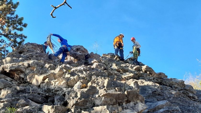Po dopolední výuce a krátkém obědě nám nakonec zbyly více jak dvě hodiny na volné lezení. Někdo stihl vylézt jen jednu-dvě cesty, jiní jich stihli více, ale den jsme si všichni nejen díky krásnému počasí moc užili. Teď už nezbývá než se těšit, až se v novém roce sejdeme znovu a naučíme se i lezení po vlastním.