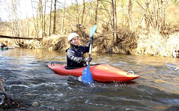Spád potoka není příliš velký, meandry jsou prošpikované naplaveným dřívím, ale všechno se dá při troše opatrnosti projet. Bidlo a Beruška jsou na kajaku v podstatě nováčci, já s Komárem a Bludem občas něco sjedeme a pouze Klára chodí trénovat se školou na kanál do Tróji. Jediného Čochtana samozřejmě chytá ona. Kláda na hladině, kterou všichni bez potíží přejíždíme, ji zabrzdí, proud si podá záď lodě a Klára padá do vody. Eskymák se podle očekávání nezdařil a ona potupně mizí ve studených vlnkách.