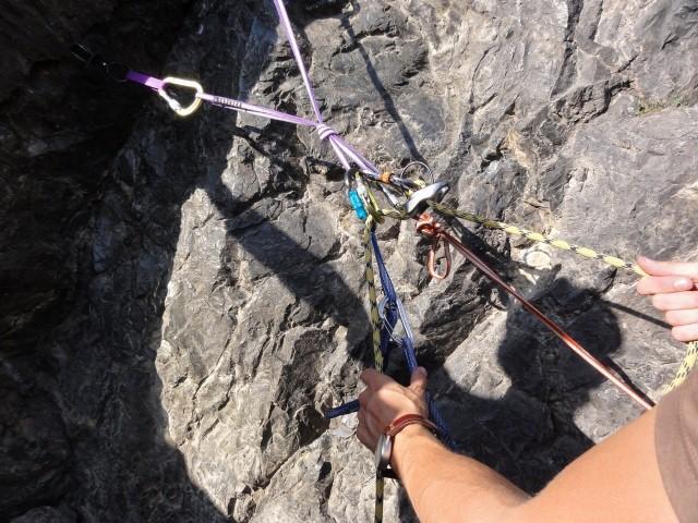 - odsedávací smyce (buď originál např. Beal, Daisy chain nebo 80 cm šitá smyce)