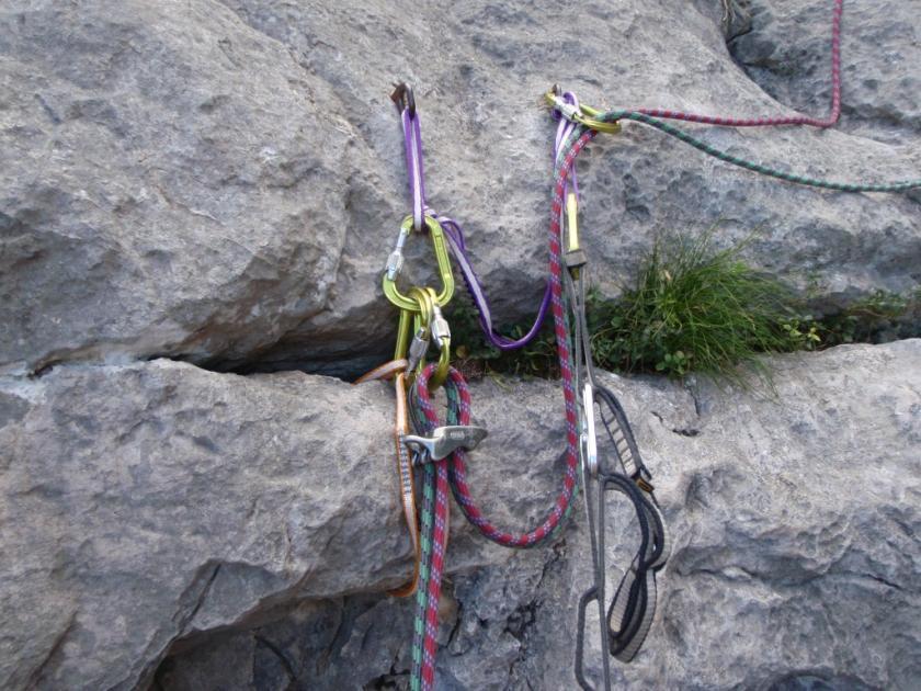 - odsedávací smyce (buď originál např. Beal, Daisy chain nebo 80 cm šitá smyce)