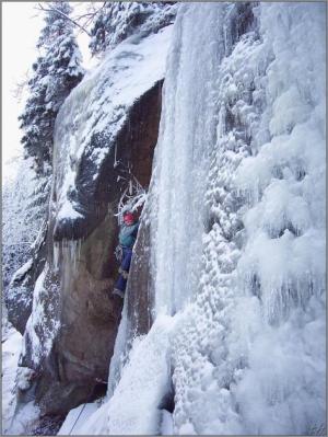 Ledopády na Štolpichu, vodopád Velký Štolpich (50.8510908N, 15.1951658E). Z Ferdinandova od Lesní hospody pěšky po zelené a dále žluté do údolí Velkého Štolpichu, tam někde ve stráních bývají ledy, přijďte na sraz, jinak už nás najít nemusíte...